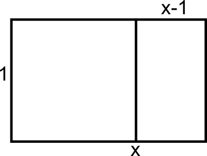 בואו נדבר לרגע על בעיה מה"עולם האמיתי". יש לנו דף נייר שרוחבו הוא 1. אנחנו רוצים לדעת מה צריך להיות אורכו של הנייר כדי שיקיים את התכונה החביבה הבאה: אם מחלקים את הנייר לריבוע ומלבן, המלבן החדש הוא בעל אותן פרופורציות בין אורך לרוחב כמו אלו של דף הנייר המקורי.