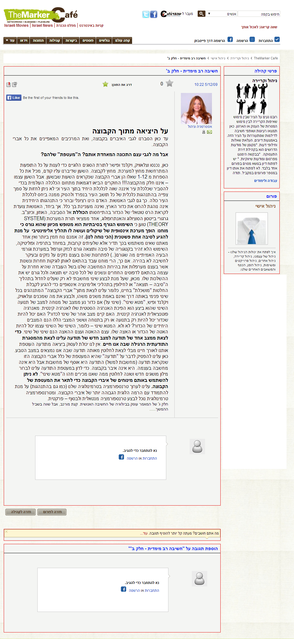 עכשיו, משסיימנו לעבור על התכונות והצצה להמשך המאמר מבהירה לנו שתורת החבורות לא מוזכרת יותר, נשאלת השאלה - בשביל מה זה היה טוב? גלילי אמרה ש"במאמר זה נתמקד בתורת הקבוצות על מנת להסביר כשלי חשיבה אנושיים המובילים אותנו לטרגדיות מוחשיות בחיינו", אבל מדוע היינו צריכים את תורת החבורות לשם כך? הרי חבורה היא מבנה עם כללים קשיחים למדי, והנסיון של גלילי להמחיש אותם עם דוגמאות מהמציאות היה חסר כל קשר למושג החבורה, אז למה להכניס את המושג הזה פנימה מלכתחילה? למה לא פשוט לתת רשימת כשלי חשיבה אנושיים וחסל? גלילי הרי לא משתמשת בשום תוצאה מתמטית שיש בתורת החבורות; למשל, היא לא מסתמכת על כך שהאיבר האדיש בחבורה הוא יחיד, או שבחבורה סופית, הפעלת איבר על עצמו מספר פעמים ששווה למספר אברי החבורה נותנת את האדיש, או שכל חבורה שמספר האיברים בה הוא ראשוני היא כזו שבה קיים איבר ש"יוצר" את כל היתר על ידי הפעלות נשנות על עצמו, וכן הלאה. גלילי לא מתעניינת במבנה המתמטי של חבורה; היא מחפשת תירוצים לומר "אדיש" ו"הופכי" ו"מכנה משותף", ולהשתמש בהילה ה"חכמה" שיש לתורות מתמטיות כדי לעטוף בליל מילים חסרות פשר שלא באמת אומרות כלום ומתיימרות לתת עצות לחיים. זה תעלול שחוק ידוע של שלל אנשים שאין להם שום דבר בעל ערך להגיד, אז הם מערבים פנימה את המדע כדי להישמע חכמים. הנה מאמר אחר ששלחו לי זה לא מכבר שעושה שטיק דומה, הפעם בנושאי ספורט.