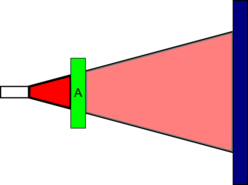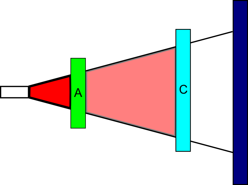 עכשיו, אחרי A נשים פילטר מקטב נוסף, C, שזווית הקיטוב שלו מאונכת לזו של A, כלומר היא \(\rightarrow\). במונחי הטיל-ומנהרה שנתתי קודם, C הוא "כיוון שמאל" אם A הוא "כיוון ימין" - כל מי שכבר מקוטב בזווית של \(\uparrow\) ואז נתקל בקיטוב של \(\rightarrow\) לא יצליח לעבור. התוצאה? אחרי ששמנו את C בהמשך של A לא נראה שום דבר על המסך.