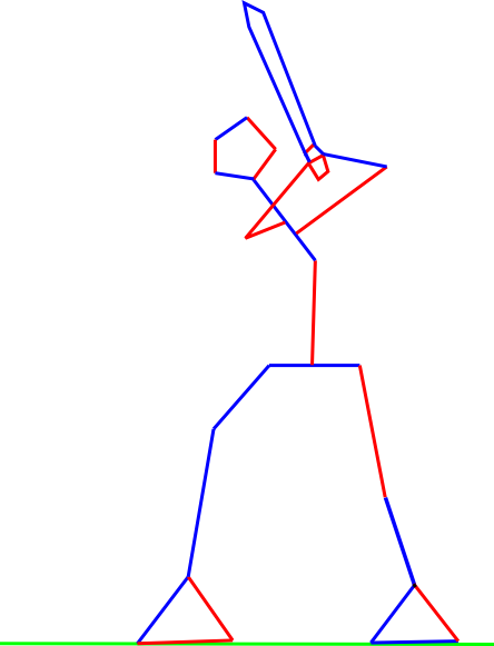 קל לנחש איך אפשר להמשיך מכאן: לוח שבו יש \(n\) קווים אדומים (שכולם מחוברים לקרקע) ואף קו כחול מתאים ל-\(\left\{ n-1|\ \right\} =n\) ולוח שבו יש \(n\) קווים כחולים ואף קו אדום מתאים ל-\(\left\{ \ |-\left(n-1\right)\right\} =-n\). כבר קיבלנו את כל המספרים השלמים, אבל עד כה טרם ראינו משהו מתוחכם.