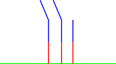 בואו נסתכל עכשיו על לוח שבו יש קו אדום וקו כחול אחד, ששניהם מחוברים לקרקע: