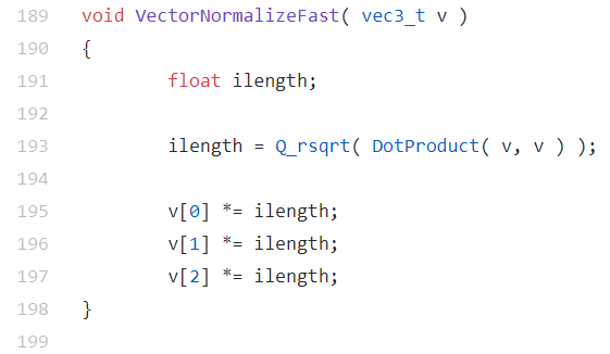 אם מסתכלים בקוד ומחפשים שימושים של Q_rsqrt זה בדיוק מה שמוצאים. למשל: