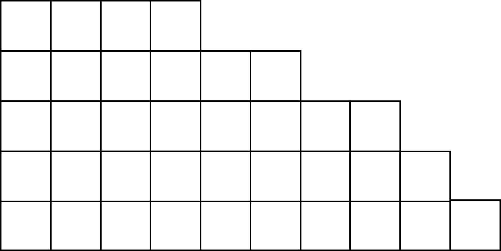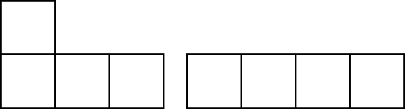 הכלל הנוסף של "אותו מספר לא מופיע פעמיים בפירוק" מתורגם אצלנו ל"בטבלת יאנג, כל שורה קצרה יותר מזו שמתחתיה". לכן הטבלה הזו לא חוקית מבחינתנו: