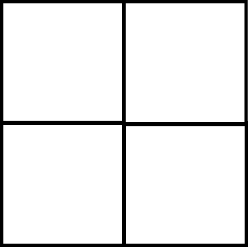 אפשר לתאר חלוקות בדרך ציורית בעזרת טבלת יאנג. טבלת יאנג כוללת בסך הכל כמה שורות של ריבועים, כשכל שורה לא ארוכה יותר מאלו שבאות מתחתיה. סכום הריבועים הכולל בטבלה הוא \(n\), והאורך של כל שורה מייצג את אחד מהאיברים בפירוק. הנה דוגמא עבור הפירוקים של 4:
