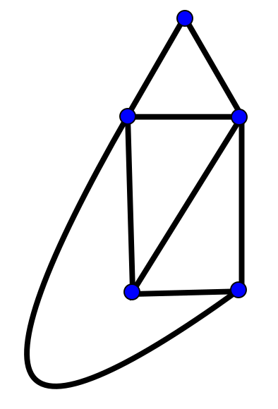 הגרף הזה הוא בעצם ציור הבית מחידת ה"האם אפשר לצייר בית עם איקס בתוכו מבלי להרים את העפרון מהדף" למעט זה שבמקום להשלים את האיקס בתוכו, הקשת שמחברת את הפינה הימנית-תחתונה והפינה השמאלית-עליונה עוברת מחוץ לבית כדי לא לחתוך את הקשת שעוברת בתוך הבית. זה מראה שהגרף הזה הוא מישורי, בנוסף לכך שהוא אוילרי. כפי שאפשר לנחש, הוא הולך לככב בהמשך הפוסט שלנו.