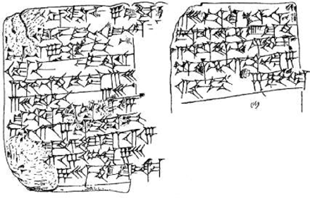 מה שאנחנו יודעים על המתמטיקה של הבבלים מגיע אלינו מלוחות חרס עם טקסטים בכתב יתדות שהצליחו לשרוד את פגעי הזמן ושודדי העתיקות. לוח אחד כזה מכונה בימינו YBC 6967 (ה-YBC פירושו "Yale Babylonian Collection" והמספר הוא פשוט המספר הסידורי של הלוח). הנה איור שמראה את הכיתוב על הלוח (משני צדדיו):