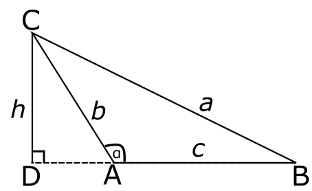 \(\left|AD\right|=b\cos\left(180^{\circ}-\alpha\right)=-b\cos\alpha\)