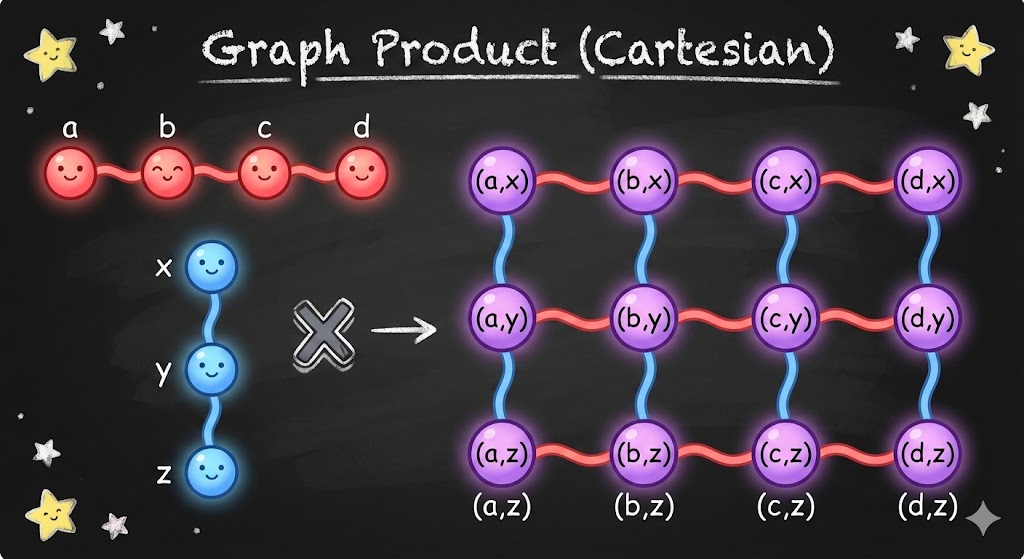 ראינו ש-\(G=P_{n}\square P_{m}\) כש-\(\square\) הוא הסימון למכפלה של גרפים.