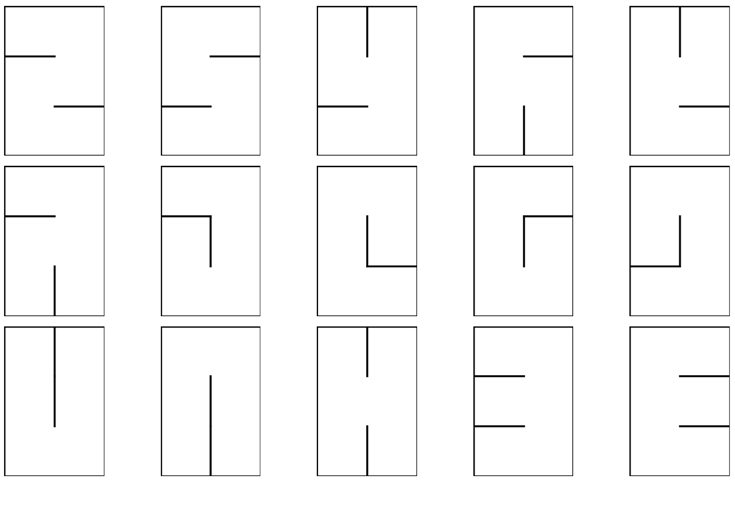 הנה דוגמא לכל 15 המבוכים הקיימים מגודל \(3\times2\) :